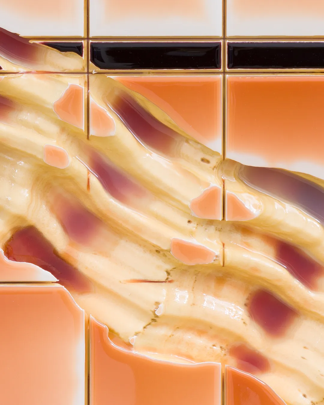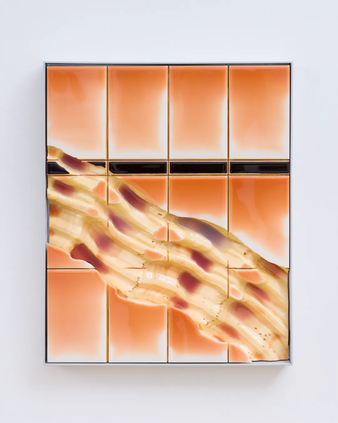 Florian Appelt (b. 1992, Austria) studied Graphic Art and Printmaking at the University of Applied Arts Vienna. “Fade in” uses the fractured tile as a structured grid in which a social symbol takes form. The artist recently exhibited at Bildraum 07, Vienna.