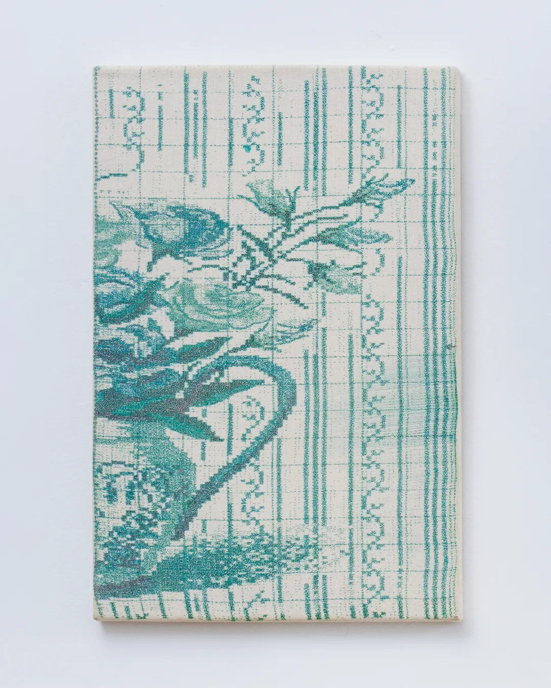 Natan Lawson (b. 1988, United States) studied Painting and Art History at Rhode Island School of Design. “Flowers In Vase” blends traditional imagery with a digital aesthetic. The artist currently has a solo exhibition at Foyer Gallery, Virginia, with an upcoming solo at Susquehanna Art Museum.
