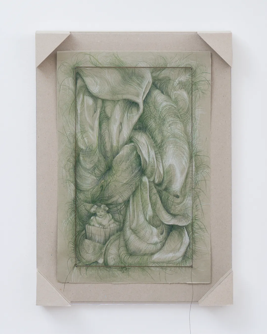 Material: Colored pencil on machine-made paper, nails, yarn, cardboard