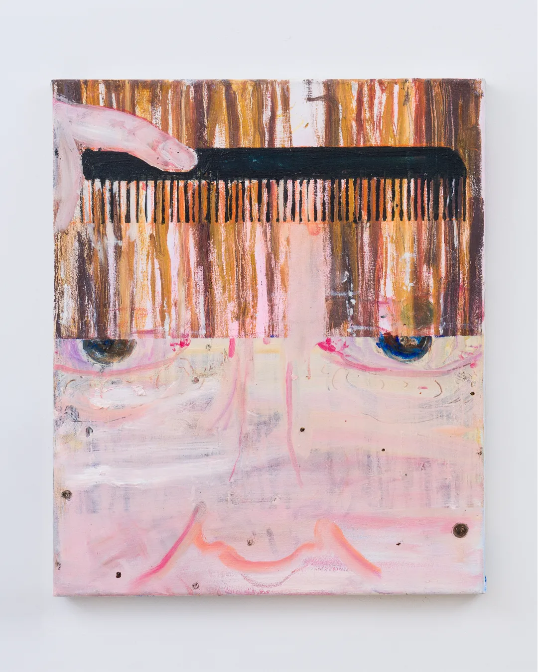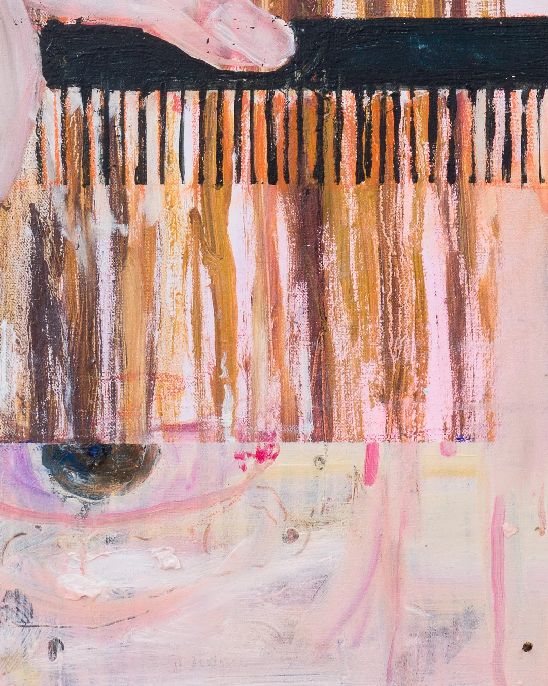 David Ilzhöfer (b. 1990, Germany) studied Painting at Akademie der bildenden Künste München. “no suffering/no magic” depicts the daily ritual of grooming. The artist recently exhibited in Shanghai.