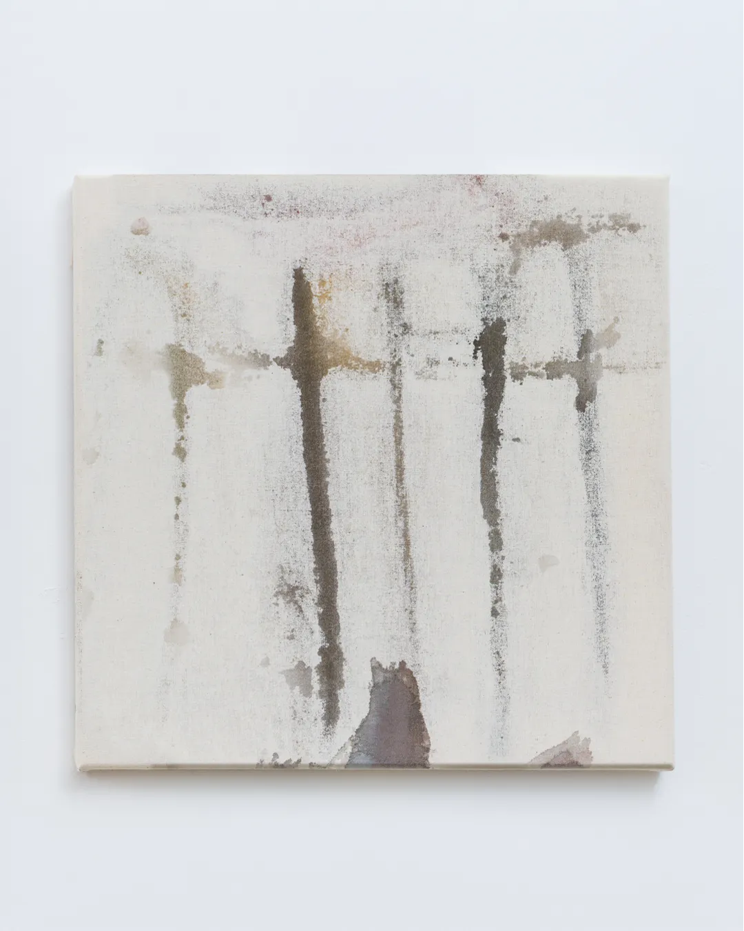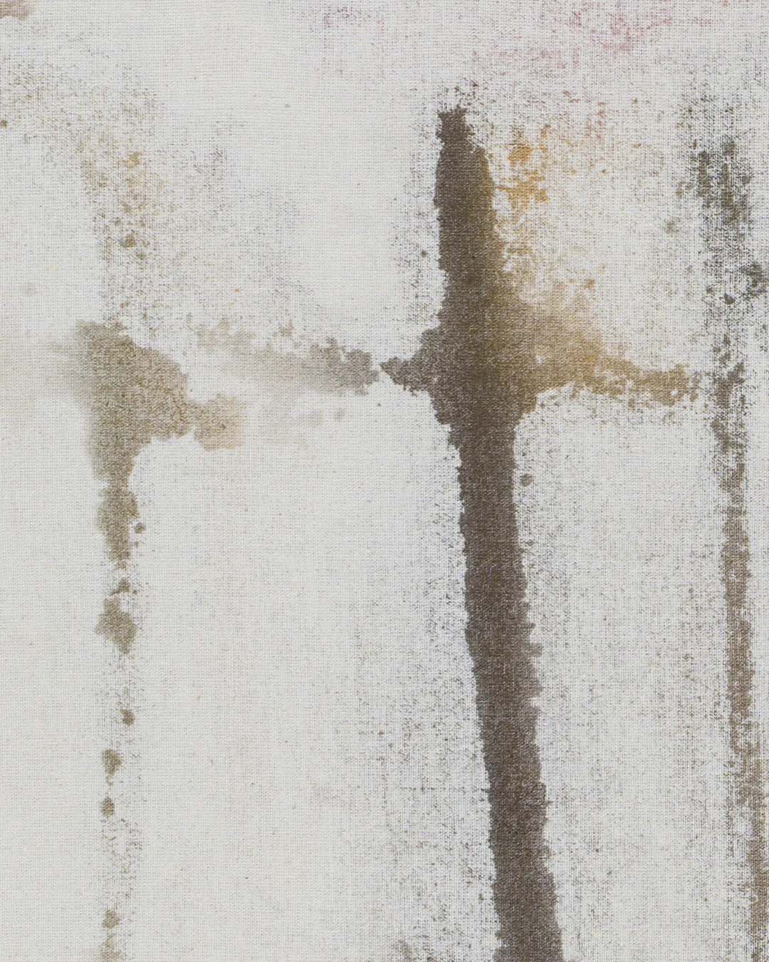 Vivyan Klemke (b. 1998, Germany) studied Fine Arts at Weißensee Kunsthochschule Berlin. “Scarecrow” presents an abstract representation of a scarecrow in a field, with the image rendered in reverse on the canvas. The artist recently exhibited at Tabakwaren, Berlin.